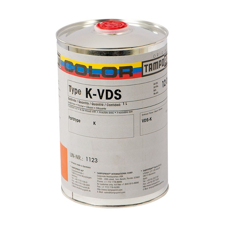 Der Verdünner ist dafür zuständig die Farbe in die verdruckbare Konsistenz zu bringen. Die Zugabe eines Verdünners beeinflusst nicht nur die Viskosität, Fließfähigkeit und das Farbabgabeverhalten der Tampondruckfarbe vom Tampon auf das Druckgut, sondern ganz besonders auch die Ablüftzeit. Neben universellen Verdünner stehen „schnelle“ und „langsame“ Verdünner zur Verfügung.